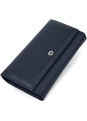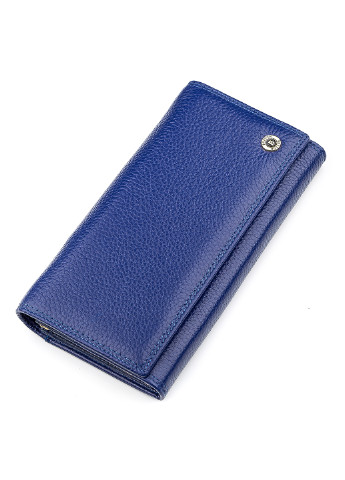 Матеріал: натуральна шкіра; Колір фіолетовий; Розміри (ШхВхГ): 18,5 х9, 5х3 Країна виробництва: Китай. Особливості 3 відділення для банкнот; 1 кишеню у внутрішній частині; 1 зручна прилегла кишеня (на зовнішній стороні); 10 відділень для пластикових карток; 2 відділення для сім-карт; 1 відділення, яке закривається блискавкою. Представлений гаманець має привабливий зовнішній вигляд з елегантним синім кольором та виробляється з якісної, зносостійкої шкіри, що має зернисту фактуру. Закривається аксесуар клапаном, що надійно фіксується на магнітах, розташованих у кутку кожної із сторін. Внутрішній простір досить великий: відділення, кишеньки, осередки, які мають гарну місткість. Є також монетниця на застібці, а також зовнішня відкрита кишеня для різних невеликих речей. Вся фурнітура надійна та оформлена в золотистому кольорі, а додатковим бонусом стане приваблива фірмова коробка