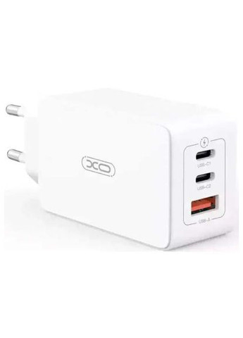 Зарядне мережеве XO CE13 GaN QC&PD3.0 65W 5A (2хType-C/USB) для заряджання пристроївЦе удосконалений зарядний пристрій, оснащений двома роз’ємами USB-C PD та одним роз’ємом USB загальною потужністю 65 Вт.Він забезпечує достатню потужність для швидкого заряджання навіть найбільших мобільних пристроїв. Сучасний мінімалістичний дизайн вписується у всі типи інтер’єрів, а якість збірки свідчить про те, що це надійний і довговічний пристрій.Характеристики:Універсальний блок живлення 65 Вт для мобільних пристроїв2x USB-C PD, 1x USB QC3.0Розміри: 104.3 x 40.1 x 30.5 мм Вес :135 г