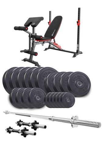 Набір Elitum Titan 109кг з лавкою HS-1065HB Pro - це чудове рішення для ефективних силових тренувань вдома. У комплект входять диски для штанги, прямий гриф, гантельні грифи і тренувальна лавка, що дозволяє виконувати широкий спектр вправ для розвитку м'язів спини, грудей, ніг і рук. Диски з ABS-пластиком забезпечують довговічність та захист від механічних пошкоджень. Цей набір дає можливість налаштувати навантаження для досягнення оптимальних результатів. Ви зможете нарощувати м'язову масу, підвищувати витривалість і покращувати фізичну форму вдома. Ми надаємо 2 роки гарантії на лавку та 5 років на штангу та гантелі, що підтверджує високу якість цього обладнання. Склад набору: Лавка тренувальна HS-1065HB Pro Диски Elitum: 10кг - 6 шт 5кг - 4 шт 2,5кг - 4 шт 1,25кг - 6 шт Грифи: Прямий гриф 167см - 1шт Гриф гантельний 45см - 2 шт Elitum: диски, які надають вашому тренуванню нову силу Диски Elitum - це основа будь-якого силового інвентарю, що забезпечує комфорт і ефективність ваших тренувань. Виготовлені відповідно до високих стандартів якості, ці диски для штанги задовільнять вимоги навіть найбільш досвідчених користувачів. Наповнювач з мінерального композиту гарантує точність ваги та довговічність, роблячи їх ідеальними для тривалих тренувань. Покриття з ABS-пластика чорного кольору не тільки додає естетичного вигляду, але й надає дискам стійкість до механічних пошкоджень. Протиударні властивості цього матеріалу захищають підлогу від пошкоджень у разі падіння дисків, а самі вони зберігають свою привабливість протягом довгого часу. Завдяки пластиковому покриттю, диски для штанги працюють без зайвого шуму, що робить тренування комфортними для вас і оточуючих. Elitum Titan - це ідеальний вибір для вашого домашнього спортзалу. Параметри дисків: Покриття дисків: ABS-пластик Наповнення: мінеральний композит Вага дисків в комплекті: 97,5кг Сучасний дизайн Діаметр отвору: 31 мм Підходить для всіх грифів діаметром 25-30 мм Колір чорний Розміри дисків: 1,25кг - діаметр 18см, товщина 25 мм, діаметр отвору 31 мм 2,5кг - діаметр 22см, товщина 35 мм, діаметр отвору 31 мм 5кг - діаметр 26см, товщина 45 мм, діаметр отвору 31 мм 10кг - діаметр 32см, товщина 55 мм, діаметр отвору 31 мм Параметри прямого грифа Прямий гриф для штанги - незамінний інструмент для тренувань, що ефективно розвиває м'язи спини, грудей, ніг і рук, зокрема біцепси і трицепси. Виконання вправ з грифом допомагає зміцнити основні групи м'язів, покращити координацію та витривалість, а також збільшити загальну фізичну силу. Виготовлений із сталі високої якості, цей гриф здатен витримувати великі навантаження, що робить його ідеальним для силових тренувань. Хромоване покриття не лише надає естетичного вигляду, але й захищає гриф від корозії, продовжуючи його термін служби. Рифлені ділянки на робочій зоні грифа забезпечують надійне зчеплення з руками, що запобігає ковзанню навіть під час важких вправ. Це робить тренування не лише комфортними, але й безпечними. Для фіксації дисків для штанги використовуються гайки Вейдера з гумовими ущільнювачами, які запобігають подряпинам на грифі і гарантують надійну фіксацію ваги. Це дозволяє швидко змінювати навантаження, що важливо для прогресу в тренуваннях. Регулярні вправи з таким грифом сприяють збільшенню м'язової маси, покращенню витривалості, а також зміцненню серцево-судинної системи. Загальна довжина: 16
