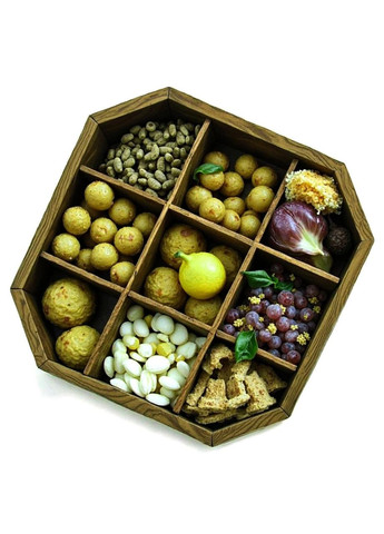 Покриття: акриловий лак. Продається тільки менажниця, без піал, горіхів, солодощів, сухофруктів та іншого наповнення!