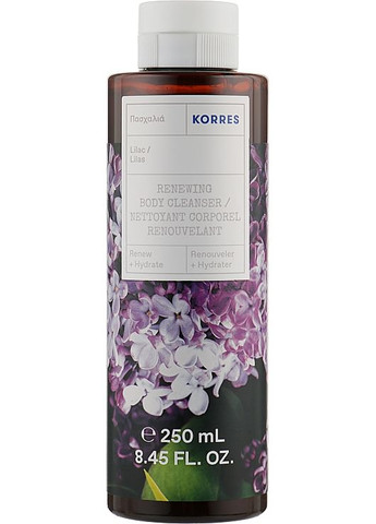 Протягом дня багато факторів впливають на шкіру, вільні радикали ведуть до передчасного старіння. Усунути негативні наслідки допоможе відновлюючий гель для душу Бузок від бренда Korres. В основі продукту – алое вера, екстракт алтею та аргінін. Активні інгредієнти м'яко очищають шкіру, надають відновлюючий та тонізуючий ефекти. Продукт забезпечує легке нанесення, утворюючи пишну піну і швидко змивається, попереджаючи дегідратацію та лущення. Особливості Korres Lilac Renewing Body Cleanser: - усуває забруднення та надлишки себуму;- регулює роботу сальних залоз;- стимулює регенераційні процеси;- насичує вологою та поживними речовинами;- захищає від дії вільних радикалів;- підтримує гідроліпідний баланс;- має протизапальні властивості;- відновлює захисний бар'єр.