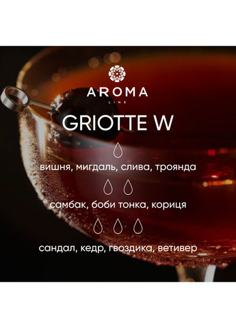 Філософія парфуму LOST CHERRY, TOM FORD GRIOTTE W — солодкий і глибокий аромат, що відкривається соковитими верхніми нотами вишні, мигдалю, сливи та ніжної троянди. Серце аромату наповнене теплом самбакської ванілі, бобів тонка та легкою пряністю кориці, створюючи відчуття солодкої розкоші. Завершують композицію деревні акорди сандалу та кедра, з нотами гвоздики й ветиверу, формуючи стійкий, чуттєвий шлейф із приємною глибиною. Можна використовувати в таких продуктах: • косметика (крім декоративної косметики); • аромадифузори; • рум-спреї; • парфумерія; • аромасаше. Рекомендації щодо застосування Базовий відсоток вводу: • аромадифузор: 8-20% • парфумована вода: 20-30% • туалетна вода: 5-15% • крем: 0,3-0,5% • лосьйон: 0,5-1% • гель для душу: 0,8-1% • шампунь: 0,5-0,8% • тверде мило: 0,9-1,2% • рідке мило: 0,5-1% Аромат має усі необхідні сертифікати, які надаються за запитом клієнта.