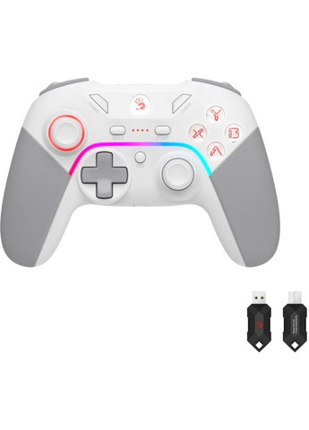 Цей унікальний геймпад надає можливість бездротового і дротового з'єднання 2.4G/USB, адаптуючись до різних умов гри. Сумісність із безліччю платформ, включно з ПК, PS3, Switch, Android (Smart TV, Set-Top Box, Smart Phone, Tablet на базі Android v5.0 і вище), робить його ідеальним для широкого кола геймерів. Особливості 2 інтерфейси підключення. Бездротове підключення 2.4 ГГц і дротове USB Мультиплатформа. ПК, PS3, Switch, Android (Smart TV, Set-Top Box, Smart Phone, Tablet на базі Android v5.0 і вище) Джойстики 360° забезпечує швидке і точне управління Геймери можуть швидше реагувати зі спеціальною функцією Turbo, особливо в шутерах Можливість призначити макроси на функціональні кнопки ML/MR Імерсивна трирівнева вібрація. Контролер оснащений асиметричними подвійними вібромоторами, які покращують ігровий процес завдяки вібраційному зворотному зв'язку (рівні вібрації 30%, 70% і 100%) Підтримка функції