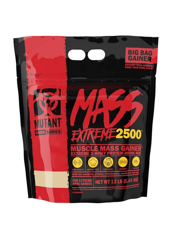 Mutant Mass Extreme 2500 - екстремальний приріст маси! Цей гейнер розроблений спеціально для хардгейнеров, у яких великі проблеми з массонабором. Комплекс складних вуглеводів в комбінації з трьома формами сироваткового білка дозволяє досягти значних результатів вже в доступному для огляду майбутньому. Відмінне рішення для всіх, хто цього потребує підвищити калорійність свого раціону. Призначення Mutant Mass Extreme 2500: підвищення калорійності раціону; допомога в массонаборе; швидке угамування почуття голоду; швидке поповнення запасів глікогену; скорочення періоду компенсації; поліпшення загального самопочуття; додаткова порція білка в раціоні. Складна багатокомпонентна вуглеводна матриця цього гейнера доповнена трьома формами сироваткового білка. Виробник гарантує високу якість продукту. Переваги Mutant Mass Extreme 2500: кілька відмінних смаків; приємна текстура коктейлю; наявність комплексу ферментів; повноцінний амінокислотний профіль; мінімум цукру; велика порція глютамина; велика упаковка; канадське якість; приваблива ціна. Як приймати Mutant Mass Extreme 2500 Приймайте по одній порції двічі на добу - між їжею і після тренування. Щоб приготувати один коктейль, налийте в шейкер 480 мл води або молока, а потім додайте порцію гейнера, розмішайте і випийте. Чим менше рідини, тим густішим і насиченим буде коктейль. Не вживайте більше двох порцій на добу, продукт не може замінити нормальне харчування. Не рекомендується вживати Гейнер вагітним і годуючим жінкам, підліткам до 16 років, алергікам і діабетикам. Зверніться до лікаря, якщо після прийому гейнера ви відзначаєте погіршення самопочуття. Зберігайте продукт в сухому і темному місці, далеко від дітей. Не допускайте попадання всередину вологи. Вживайте коктейль відразу після приготування. Щоб в напої не утворювалися грудки, додайте суміш в рідину, а не навпаки. Вміст елементів у 1й порції 285 грам Калорії 1070 ккал Жири 2,5 г - насичені 1,5 г Холестерин 45 мг Натрій 220 мг Вуглеводи 231 г - харчові волокна 3 г - цукор 4 г Білок 30 г Кальцій 150 мг Залізо 1,5 мг Калій 535 мг Вітамін С 20 мг Суміш амінокислот Mutant Mass XXXTreme 2500: L-глютамін та глутамінова кислота 5 г L-лейцин 3,1 г L-ізолейцин 2 г L-валін 1,6 г Суміш ферментів 25 мг Інгредієнти суміш вуглеводів (мальтодекстрин, крохмаль воскової кукурудзи, ячмінний крохмаль, солодка картопля, вівсяні пластівці), багатофазна суміш - 3 сироваткових білка (концентрат сироваткового білка, ізолят сироваткового білка, гідролізат сироваткового білка, гідролізат сироваткового білка) , загусники (знежирені соєві боби, горох, гуарова смола), містить 2% або менше: натуральні та штучні ароматизатори, натуральні вершкові ароматизатори, соняшниковий та/або соєвий лецитин, сукралоза, цитрат калію, діоксид кремнію, ферменти (лактаза, протеаза), екстракт кориці (Cinnulin PF), вишневий пиріг. Склад може відрізнятися залежно від смаку Виробник: Mutant; Форма випуску: Порошок; Вага,г: 5450; Кількість порцій, шт: 19; Зміст порції: 285 грам; Джерело вуглеводів: Воскова кукурудза, Солодка картопля, Мальтодекстрин, Вівсяні висівки, Ячмінний крохмаль; Тип: Високовуглеводні гейнери; Зміст білка,%: 10; Вміст вуглеводів,%: 81; Джерело білка в гейнері: Сироватка; Добавки: Вітаміни, Амінокислоти; Пол: Жіночий, Чоловічий; Вікова категорія: Дорослі; Країна виробника: Канада; Призначення: Для набору м'язової маси, Для загального відновлення, Для підвищення