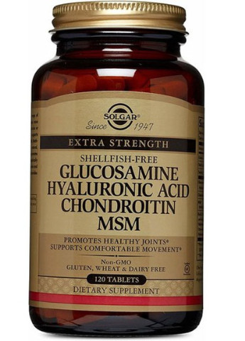 Спеціальний комплекс з глюкозаміном, гіалуроновою кислотою, хондроїтином і МСМ застосовується для профілактики і лікування захворювань кісткової системи. Підвищена сила дії Не містить ракоподібних Зміцнює суглоби Забезпечує свободу рухів Без ГМО Без глютену, пшениці і молочних продуктів Відсутність глютену підтверджено сертифікатом Біологічно-активна добавка Глюкозамін Regenasure Виготовлено з колагену BioCell OptiMSM Глюкозамін забезпечує рухливість, діапазон рухів і гнучкість. Він допомагає знизити епізодичній стрес для суглобів, що виникає через заняття спортом або фізичної активності. Хондроітин підтримує роботу хрящів і суглобів. МСМ (метілсульфонілметан) являє собою натуральний і біодоступний джерело сірки і зберігає рухливість суглобів. МСМ створює ефект синергії, посилюючи дію глюкозаміну і хондроїтину. Крім того, даний препарат містить гіалуронову кислоту. Рекомендації щодо застосування В якості біологічно активної добавки для дорослих приймати по три (3) таблетки в день (бажано під час їжі) або відповідно до рекомендацій лікаря. Інші інгредієнти Рослинна целюлоза, мікрокристалічна целюлоза, рослинна стеаринова кислота, діоксид кремнію, рослинний стеарат магнію, рослинний гліцерин. Не містить глютену, пшениці, молочних продуктів, сої, дріжджів, цукру, штучних ароматизаторів, підсолоджувачів, консервантів і барвників. Попередження Як і перед початком прийому будь-яких інших добавок, необхідно проконсультуватися з лікарем, якщо ви вагітні, годуєте грудьми, приймаєте будь-які ліки (зокрема антикоагулянти) або страждаєте яким-небудь захворюванням. При виникненні будь-яких побічних реакцій слід припинити прийом і звернутися до лікаря. Зберігати в недоступному для дітей місці. Зберігати при кімнатній температурі. Не застосовувати препарат, якщо зовнішня захисна плівка відсутня або пошкоджена. Результати залежать від індивідуальних особливостей.
