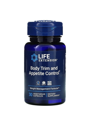 Body Trim and Appetite Control – це формула від американського бренду Life Extension, створена для дорослих та спрямована на участь у фізіологічних процесах, пов'язаних з контролем апетиту, обміном нутрієнтів та реакціями організму на тимчасові фактори Розмір порції: 1 вегетарІанска капсула Кількість порцій: 30 Кількість на порцію % від добової потреби Metabolaid® (екстракт лимонної вербени (листя), екстракт гібіскусу (квіток)) 500 мг * *Добова потреба не визначена.