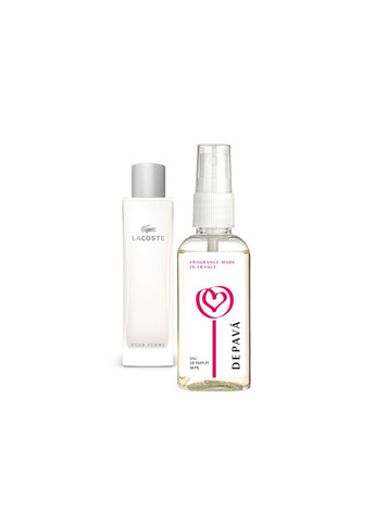 Відчуйте себе впевнено та вишукано кожного дня. Жіночі парфуми українського бренду DEPAVA підкреслять ваш стиль, створюючи ефект неперевершеної привабливості. Завдяки вишуканій композиції ароматів, вони стають невидимим атрибутом вашої індивідуальності, адже наші аромати створені саме для тих, хто цінує якість і стиль. Парфум DEPAVA (Lacoste Pour femme white) жіночий - Розкішний багатогранний квітково-деревний букет аромату представлений нотами геліотропу, жасмину та гібіскуса, переходячи в довгограючий шлейф з сандалового дерева, кедра та ветивера. Тип аромату: деревні, квіткові. Початкова нота: бергамот, зелене яблуко, олія мускатного горіха, перець, фрезія. Серцева нота: геліотроп, гібіскус, жасмин, троянда, фіалка. Кінцева нота: кедр, шкіра, лабданум, ладан, мускус, сандалове дерево.
