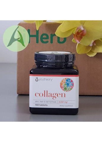 * Добавка для шкіри, волосся та нігтів| * 6000 мг†| * Дієтична добавка| * Створено для всіх| * Відновлює протеїни краси| * Допомагає протистояти старінню шкіри| * Відновлює шкіру, волосся та нігті| Колаген Youtheory може допомогти досягти внутрішнього здоров’я та зовнішньої краси. Це засіб, що містить 6000 мг легко засвоюваних пептидів колагену в кожній порції, забезпечує необхідні структурні блоки для підтримки нормального процесу старіння й більш молодого зовнішнього вигляду. Він також містить добову дозу вітаміну С, який сприяє нормальному утворенню колагену й підвищує антиоксидантний захист.| † 6000 мг гідролізованого колагену у щоденній порції.| | РЕКОМЕНДАЦІЇ ІЗ ЗАСТОСУВАННЯ| (Дорослим) Приймайте по шість (6) таблеток на день, усі за один раз або розділеними дозами.| | ІНШІ ІНГРЕДІЄНТИ| Стеарат магнію (рослинного походження).| Цей продукт виробляється на підприємстві, де обробляються екстракти риби.| | Поживна цінність| Розмір порції: 6 таблеток| Порцій в упаковці: 26| Кількість в 1 порції % від добової норми| Вітамін C (у вигляді аскорбату кальцію) 90 мг 100 %| Гідролізований колаген 6000 мг **| ** Добову норму не визначено.