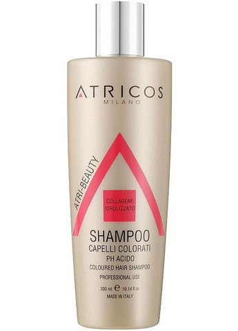 Як зберегти здоров’я локонів та привабливий відтінок після фарбування? Тут допоможе лише правильно підібрана доглядова косметика. Шампунь для фарбованого волосся від бренду Atricos має ефективну формулу з гідролізованим колагеном, який проникає в саму волосяну структуру та допомагає її зміцнити. Він забезпечує зволоження волосся, а висока кислотність шампуню закриває лусочки та надійно «запечатує» вологу та пігмент, запобігаючи сухості та вимиванню кольору. Особливості Atricos Hydrolysed Collagen Acidic pH Colored Hair Shampoo: - захищає від впливу низьких та високих температур, сонця, сухого повітря;- очищає від себуму, змертвілих клітин, залишків стайлінгових засобів;- закриває лусочки та захищає від вимивання пігменту;- зміцнює та підтримує волосяну структуру;- знижує статичну електризацію;- глибоко зволожує шкіру голови;- підтримує пружність та об’єм;- підвищує яскравість відтінку;- не провокує сплутування.