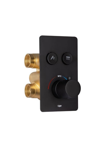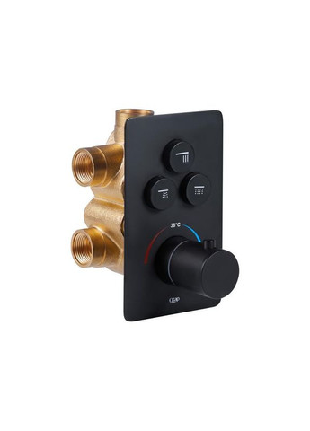 Змішувач термостатичний прихованого монтажу для душу Qtap Votice 6443T105NKB на трьох споживачів – це зручне рішення для сучасної ванної кімнати. Міцна матова чорна поверхня збереже зовнішній вигляд змішувача на довгі роки. Змішувач виготовлений з високоякісної латуні, яка не схильна до корозії. Завдяки вбудованому термостату встановлена температура води буде постійно підтримуватися, що зробить гігієнічні процедури ще більш комфортними.