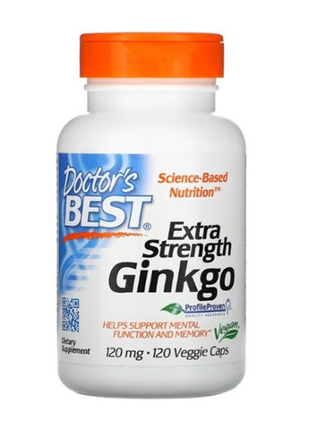 Doctor's Best, гінкго білоба з підвищеною силою дії, 120 мг, 120 вегетаріанських капсул Зверніть увагу - даний продукт має новий вигляд. Дієтична добавка. Не є лікарським засобом. Опис Дієтична добавка Допомагає поліпшити функції мозку і пам’ять Веганський продукт Без ГМО, глютена та сої Підтримує кровообіг мозку Допомагає поліпшити функції мозку і пам’ять Добавка посиленої дії з гінкго білоба від Doctor's Best допомагає поліпшити пам’ять і роботу мозку. Крім того, вона підтримує роботу мітохондрій і нервових клітин. Цей гінкго білоба преміальної якості є стандартизований екстракт, у якому гарантовано містяться мінімум 24% флавонолових глікозидів і 6% терпенових лактонов, що підтверджено незалежним лабораторним аналізом. Розмір порції: 1 вегетаріанська капсула Порцій в упаковці: 120 Кількість в 1 порції % від добової норми Екстракт листя гінкго білоба (Ginkgo biloba) забезпечує не менше 24% флавонових глікозидів гінкго (28,8 мг) і 6% терпенових лактонов (7,2 мг) 120 мг † † Добову норму не визначено. Рекомендації із застосування Дорослим приймати по 1 капсулі на день незалежно від прийому їжі або відповідно до рекомендацій лікаря-дієтолога. Інші інгредієнти Мікрокристалічна целюлоза, модифікована целюлоза (вегетаріанська капсула), діоксид кремнію. Попередження Перед прийомом добавки з гінкго білоба в період вагітності або грудним вигодовуванням слід проконсультуватися з лікарем. Будьте обережні при користуванні при прийомі антикоагулянтів (препаратів, що розріджують кров) і препаратів ІМАО. Зберігати в недоступному для дітей місці.