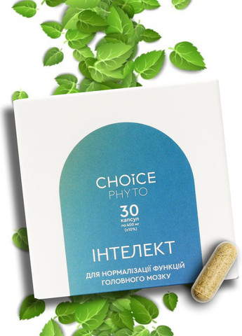 • Активізує діяльність головного мозку • Підтримує гостроту розумового сприйняття • Підвищує розумову активність • Покращує циркуляцію крові в організмі, запобігає утворенню тромбів ПРО ІНТЕЛЕКТ Всі наші дії і реакції відбуваються завдяки сигналам, які посилає головний мозок. Людський мозок – дуже складний орган, здатний обробляти величезний обсяг інформації і про нього можна розповідати нескінченно, але факт залишається фактом: якщо головний мозок припиняє виконувати свої функції, людина або помирає, або перетворюється в «живий труп». А щоб такого не сталося, потрібно періодично, а після 30 років постійно, надавати нашому головному мозку підтримку. І в цьому прекрасно допомагає комплекс Інтелект. ДІЯ КОМПОНЕНТІВ Гінкго-білоба (листя) – володіє високою антиоксидантною активністю, особливо відносно головного мозку; перешкоджає гемолизу еритроцитів, який призводить до тромбоутворення; захищає кровоносні судини, клітинні мембрани і нормалізує метаболізм тканин мозку; забезпечує повноцінне постачання киснем серце, мозок і інші органи; стимулює розумову діяльність, особливо при ослабленні пам’яті, запаморочення, головний біль, депресіях, шумі у вухах. Лаванда колоскова (листя) – покращує функціонування нервової та серцево-судинної систем; зменшує стомлюваність; підвищує реактивність організму людини. Розмарин лікарський (листя) – покращує проникність периферичних судин; ефективний при розумовій переутомляемости; знімає спазми периферичних кровоносних судин. Показаний при безсонні, мігрені, запамороченні, вегетативно-судинної дистонії. Родіола рожева (корінь) – стимулюючий засіб в умовах розумової перевтоми у практично здорових людей; знімає психічне перенапруження. Звіробій продірявлений (трава) – знімає спазми кровоносних судин; покращує венозний кровообіг; зміцнює стінки судин; усуває порушення периферичного кровообігу в головному мозку. Меліса лікарська (трава) – надає тонізуючу дію на головний мозок; нормалізує тиск в умовах емоційного перезбудження. Кислота глутамінова – активізує розумову і розумову діяльність, концентрацію уваги; покращує пам’ять і настрій. Кофермент Q-10 – активізує діяльність головного мозку; нормалізує тиск; уповільнює процеси старіння організму; має антиоксидантні властивості; нормалізує роботу серцево-судинної системи; бере участь у забезпеченні організму енергією. Таурин (амінокислота) – підсилює імунний захист; нормалізує тиск; забезпечує нормальну роботу органів зору, особливо в темряві; запобігає тромбоутворення; зміцнює серцевий м’яз; стабілізує серцевий ритм. Гліцин (амінокислота) – підтримує гостроту розумового сприйняття, покращує кисневе живлення клітин (особливо клітин головного мозку). ЕФЕКТИВНІСТЬ Підтверджено клінічними випробуваннями ІПАГ АМН України. СПОСІБ ЗАСТОСУВАННЯ Дорослим та дітям старше 12 років вживати по 1 капсулі 2 рази на день, дітям від 6 до 12 років по 1 капсулі на день перед їдою, запиваючи водою. Курс вживання для дорослих не обмежений. Дітям - 30 – 45 днів. Повторний курс - після двотижневої перерви. Рекомендується повторювати 3-4 рази на рік. Побічні явища У процесі клінічних випробувань побічні явища не виявлено. Протипоказання Індивідуальна непереносимість компонентів. Цей препарат можна назвати по різному, наприклад: фітопрепарат, фітоко