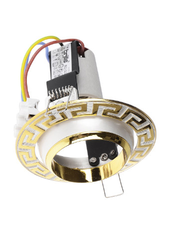 точковий світильник призначений для використання в гіпсокартонних стелях, стінах, арочних отворах. Компактний, зручний у використанні, виконаний в класичному стилі, що дозволяє застосовувати його для підсвічування будь-якого інтер'єру як житлових приміщень, так офісних. Виготовлений з алюмінію, забарвлений в колір латунь, поверхня прикрашена візерунком. Лапки-держателі виготовлені з нікелю, міцні, не ламаються, надійно тримають світильник в спеціальному отворі. Для роботи необхідно використовувати одну галогенну рефлекторну або світлодіодну лампу з цоколем, потужністю 20 Вт. Розрахований для роботи від мережі 12 В, потрібен трансформатор