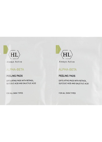 Відлущувальні очищувальні серветки, виготовлені фахівцями бренда Holy Land для всіх типів шкіри, — чудова можливість у домашніх умовах забезпечити салонний догляд і провести легкий пілінг. Завдяки оптимальній концентрації активних компонентів (гліколева, молочна, саліцилова кислоти, ретинол) вироби делікатно відлущують ороговілі часточки епідермісу, запускають процеси відновлення, повертають шкірі сяйво. Їх також можна використовувати для плечей і спини. Серветки призначені для вечірнього застосування. Удень на шкірний покрив необхідно наносити сонцезахисні засоби.Особливості Alpha-Beta & Retinol Peeling Pads від бренда Holy Land:- кожна серветка герметично упакована;- залишають приємне відчуття свіжості;- виготовлені з приємної на дотик тканини;- освітлюють сліди постакне, сонячну і вікову пігментацію;- підсушують запалення;- вирівнюють колір і мікрорельєф обличчя;- звужують пори;- роблять епідерміс гладеньким;- готують шкірний покрив до використання інших косметичних продуктів;- тонізують і підтягують;- містять екстракти чорниці, цукрового клена, цукрової тростини, лимона, апельсина, зеленого чаю і ромашки, гліколеву, саліцилову і молочну кислоти, ретинол;- розчиняють сальні пробки і глибоко очищають гирла пор, запобігаючи їхньому закупорюванню надалі;- активізують синтез колагену та еластину, що зміцнюють епідерміс;- не рекомендується застосовувати вагітним і в період лактації.
