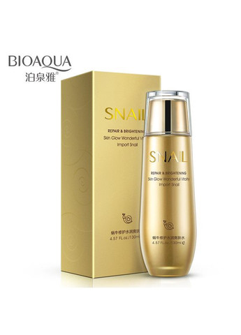 Відновлювальний тонер для обличчя з фільтратом слизу равлика Snail Repair&Brightening здатний змінити тьмяну, зневоднену та стягнуту шкіру обличчя, наповнивши її вологою й зробивши сяйливою. Цей косметичний продукт просто незамінний, коли потрібно швидко надати шкірі лад, підготувати її до нанесення макіяжу або засобу з догляду. Переваги тонера з фільтратом равликового слизу: Він швидко вбирається. Завдяки легкій текстурі засіб не залишає на обличчі жирної плівки, може використовуватися вранці перед нанесенням макіяжу. Він працює над досконалістю шкіри комплексно, розгладжуючи зморшки, усуваючи пігментацію, вирівнюючи колір обличчя та звужуючи пори. Він підходить для постійного застосування, оскільки компоненти засобу не викликають ефекту звикання й однаково ефективно діють і на 1, і на 30 день використання. Характеризуються на особливих властивостях муцину переваги тонера повною мірою розкривають себе на млявій тьмяній шкірі. Спеціальний компонент, що входить до складу, під назвою епідермальний фактор росту діє на клітини епідермісу якнайкраще, пришвидшуючи їх регенерацію. Такі якості косметичного продукту особливо важливі, якщо на шкірі є нерівності та недосконалості, від яких вам хотілося б позбутися. Регулярне застосування тонера робить шкіру рівною, еластичною, пружною. Виражений ефект помітний уже за 4 тижні, а через 12 тижнів можна помітити стійке поліпшення кольору обличчя. Засіб добре підходить для тих, хто бореться з постакне. Збалансований склад тонера не містить шкідливих компонентів. Муцин же є справжнім джерелом із погляду вмісту вітамінів, амінокислот, у ньому також є гліколева кислота, колаген, еластин, хітозан та інші корисні для шкіри речовини. Косметика з фільтратом равликового слизу спочатку встигла підкорити Азію, а тепер активно використовується жінками в усьому світі. Муцин — активний компонент, який починає працювати відразу ж після потрапляння на шкіру, тому результати застосування тоніка не змусять довго чекати. Спосіб застосування наносити засіб треба двічі на день, вранці та ввечері. Невелику кількість тонера нанесіть на кінчики пальців, попередньо очищивши шкіру від макіяжу, потім поплескувальними рухами масажними лініями протріть обличчя. Склад Water, Glycerin, Propylene Glycol, Glycereth-26, Allantoin, Hydroxyethylcellulose, Imidazolidinyl Urea, Iodopropynyl Butylcarbamate, PEG-40 Hydrogenated Castor Oil, Flavor, Methylisothiazolinone, Menthyl Lactate, Snail Secretion Filtrate, Sodium Hyaluronate.