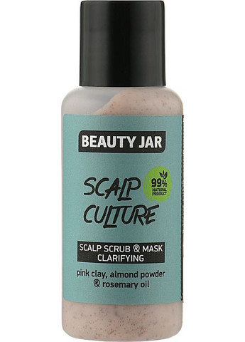 Волосся не відповідає за процес виділення себуму, а значить жирніє не воно, а саме шкіра голови. Тому часте миття голови не приведе до бажаного результату, якщо не подбати про глибоке очищення шкірного покриву. Спеціальна очищувальна скраб-маска Beauty Jar Scalp Culture створена на основі натуральних компонентів – рожевої глини, мигдальної пудри та олії розмарину. Цей склад забезпечує нормалізацію роботи сальних залоз, освіжає, забезпечує тривалу чистоту та захищає від виникнення лупи.Особливості Beauty Jar Scalp Culture Scrub & Mask: - на 99% складається із компонентів природного походження;- рожева глина і мигдальний порошок у складі ефективно очищають шкіру, м'яко відлущують ороговілий шар, видаляють надлишки себуму;- олія розмарину надає антисептичну та тонізувальну дії, а також стимулює місцевий кровообіг;- сечовина стимулює ріст волосся;- бетаїн кондиціонує та знімає подразнення;- лавандова олія заспокоює і загоює шкіру голови.