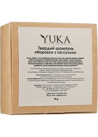 Твердий шампунь для волосся «Марокко з гасулом» українського бренда Yuka — ефективний очищувальний засіб, який якнайкраще підходить для всіх типів пасом, але особливо цінною знахідкою стане для власниць кучерявих локонів. У його складі немає ПЕГ, силіконів, парабенів, штучних барвників, ароматизаторів і синтетичних добавок. Завдяки багатій активними компонентами формулі, засіб підтримує силу волосків, зміцнює їх, допомагає залишатися еластичними і сяйними. Особливості твердого шампуню для волосся «Марокко з гасулом» від бренда Yuka: - легко змивається звичайною теплою водою без посиленого механічного впливу;- підходить для всіх типів волосся, зокрема фарбованого;- можна використовувати після кератинового випрямлення, оскільки засіб не вступає в реакцію з кератином і не шкодить волоссю;- у результаті систематичного застосування помітно оздоровлює пасма, дарує їм гарний блиск і гладкість;- дуже дбайливо очищає пасма від себуму і забруднень, не пошкоджуючи структуру волосків;- містить марокканську глину гасул, яка робить локони густішими, м’якшими і шовковистими;- допомагає усунути проблему жирного біля коріння і сухого на кінчиках волосків;- зміцнює пасма по всій довжині, стимулює їх ріст, запобігає ламкості і випаданню;- здійснює легкий пілінг шкірного покриву голови.