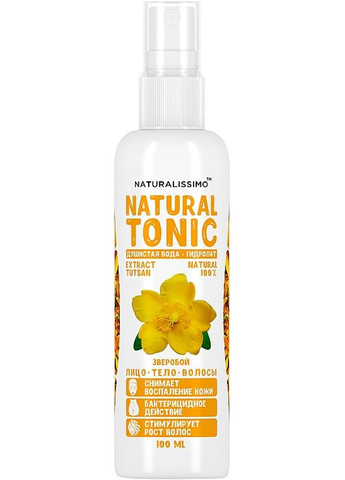 Українська компанія Naturalissimo розробила чудовий засіб - гідролат звіробою. Цей натуральний тонік можна застосовувати під час вмивання, як косметичний лід, як ополіскувач після миття голови та як спрей для освіжання шкіри та волосся. Для виготовлення продукту гарячу пару було перегнано через зелені частини рослини та крізь висушені суцвіття. Таким чином дистилят увібрав дубильні речовини, ефірні олії, флавоноїди, антрахінони, вітаміни С, Е та численні мікроелементи. За регулярного застосування цього засобу ви зможете підвищити тонус шкіри та надати покриву здорового кольору, а також усунути лупу, розгладити дрібні зморшки, покращити процес регенерації тканин і мікроциркуляцію крові, а також усунути болісні відчуття за наявності спазмів у м'язах і позбутися слідів подразнень та акне. Спосіб застосування: Для забезпечення більшої ефективності мультикомпонентних косметичних продуктів екстракт звіробою у вигляді дистиляту слід застосовувати, як рідку основу у складі:- очищувальних засобів, гелів та емульсій;- шампунів і кондиціонерів;- зволожувальних кремів. Можна застосовувати гідролат звіробою, як активатор для альгінатних масок або для розведення мінеральних (каолінових чи із кембрійської блакитної глини) масок для догляду за проблемною шкірою.