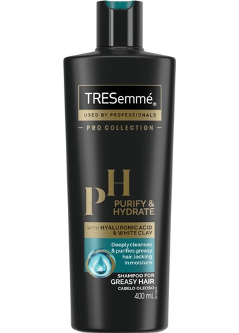 Шампунь Hydrate & Purify від бренду Tresemme — це догляд за волоссям, який поєднує глибоке очищення та інтенсивне зволоження. Основні компоненти — гіалуронова кислота та біла глина — якісно усувають забруднення і залишки себуму, утримуючи необхідну вологу в клітинах шкіри. Амінокислоти та кераміди проникають в структуру волосин, відновлюючи їх та надаючи сили і слухняності. А розкішний аромат створює відчуття салонної розкоші у вашому домі. Особливості Tresemme Hydrate & Purify Shampoo: - робить волосся свіжим та зволоженим, готовим до будь-якої зачіски;- підтримує баланс вологи, запобігаючи сухості та ламкості пасом;- забезпечує слухняність та легкість укладки;- створює приємні відчуття під час миття;- підходить для всіх типів волосся;- не містить парабенів і глютену;- флакон виготовлений зі 100% переробленого пластику.