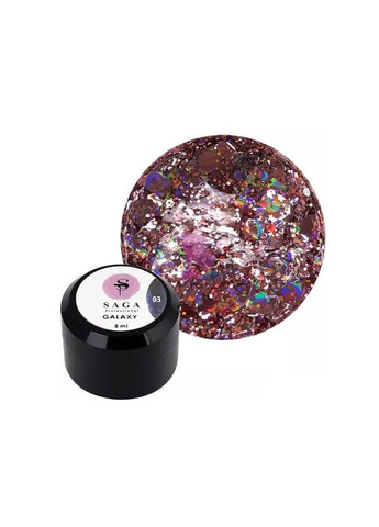 Гель для дизайну Saga Professional Galaxy Glitter - ідеальний вибір для осліплюючого манікюру. До складу засобу входять фольговані елементи різних форм і розмірів, кольоровий глітер та брокат. Ці частинки надають дизайну візуальної глибини і об'єму, а голографічний ефект робить його яскравим і незабутнім. Лінійка Saga Professional призначена для створення оригінального дизайну нігтів. Засіб можна використовувати як самостійно, так і з різними кольоровими підкладками. Гель чудово лягає на нігті, легко знімається та є стійким до подряпин та сколів. Для більш надійного ефекту дизайн слід закріпити фінішним топом. Манікюр із гліттер-гелем безперечно притягне погляди своїм неймовірним сяйвом. Переваги гелю для дизайну Saga Professional Galaxy Glitter: Забезпечує нігтям осліплюючий, сяючий ефект Покриття стійке до пошкоджень, надовго збереже свіжий вигляд Щільна текстура гелю, з якою зручно працювати, забезпечує ідеально рівне покриття Голографічний перелив надає дизайну глибини та об'єму Гель підходить для самостійного використання, а також для декору на кольорових підкладках Спосіб застосування: Нанести гель тонким шаром на підготовлені нігті та просушити у лампі. За необхідності процедуру повторити. Для полімеризації в LED-лампі достатньо 30 секунд, для UV-лампи потужністю 36 Вт - 2 хвилини. Залежно від потужності ампи, час полімеризації може змінюватись. Примітка: колір товару може відрізнятися від реального, залежно від типу матриці та її калібрування на вашому пристрої.