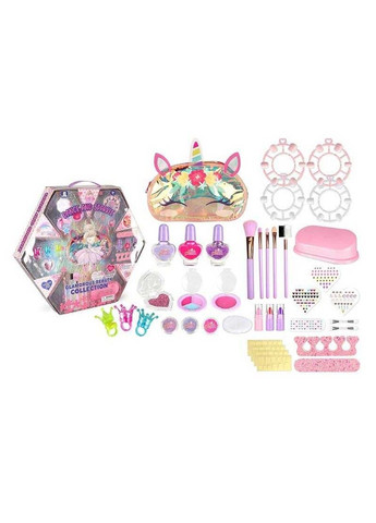Набір дитячої косметики та прикрас "Dance and Sparkle" – ідеальний комплект для маленьких принцес Цей чарівний набір подарує вашій дитині справжнє відчуття казковості та стилю. Косметика на водній основі, блискучі аксесуари та стильні прикраси дозволять маленьким модницям створювати унікальні образи для ігор та святкових подій. Особливості: - палітра тіней і блискіток у яскравих відтінках, румяна, помади, глітери; - три дитячі лаки для нігтів; - набір накладних нігтів з різноманітним дизайном, наліпки та підставка для манікюру; - набір пензликів для макіяжу та губки-аплікатори; - стильні колечка; - блискучий роздільник для педикюру та пилка для нігтів; - стильна упаковка у формі шестикутника – ідеально для подарунка. Розмір упаковки:46 см × 7 см × 53 см Упаковка:Коробка Вік:від 5 років