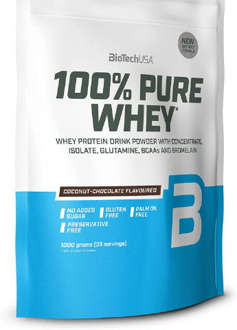 Високий вміст білка: 78% 6 г BCAA на порцію Без аспартаму Без консервантів Широкий асортимент смаків Забезпечення ваших м'язів високоякісними поживними речовинами необхідне нормальної роботи м'язів, їх зростання та підтримки. Як і ви самі, ваші м'язи люблять «добре поїсти». Побалуйте їх і себе смачним сироватковим протеїновим порошком 100% Pure Whey! ЧОМУ 100% ЧИСТА СИРОВІТКА? Тому що це протеїновий коктейль найвищої якості з високою BV (біологічною цінністю) та 78% вмістом білка, повністю отриманого із джерел сироваткового білка. Доступний у широкому діапазоні смаків, 100% Pure Whey є комбінацією концентрату сироваткового протеїну, ізоляту сироваткового протеїну та додаткових амінокислот (L-глютамін, L-аргінін та BCAA). Версія без смакових добавок містить лише концентрат сироваткового протеїну без додавання підсолоджувачів, барвників та ароматизаторів. Виберіть 100% Pure Whey, щоб зарядити м'язи! На порцію (28 г): 22 г білка 6 г BCAA Це значення відноситься до ароматизованих версій; неароматизована версія містить 5 г BCAA на порцію Кому рекомендується 100% Pure Whey? - це відмінний джерело білка всім, оскільки вміст білка сприяє підтримці м'язової маси здоров'я кісток, і навіть зростання м'язової маси. - тим, хто хоче швидке рішення відновлення після тренування. - тим, хто любить приємні, вершкові та різноманітні смаки. Рекомендується неароматизована версія - любителям здорової їжі, оскільки завдяки високому вмісту білка та нейтральному смаку, з неї можна приготувати корисні для здоров'я, але багаті на калорії страви та солодощі. - чутливі до добавок. НАВІЩО ВАМ ПОТРІБНІ БІЛКИ Білок є важливим будівельним блоком нашого тіла, джерелом поживних речовин, що складається з амінокислот, що виробляються нашим організмом та доповнюються із зовнішніх джерел. Сприяє підтримці м'язів під час тренувань, дієти та повсякденного життя. Вам потрібно більше білка, якщо ви регулярно займаєтеся спортом, якщо ви хочете збільшити свою м'язову масу і в міру того, як ви стаєте старшим. ЧОМУ БІЛКОВА ДОБАВКА? Швидкий, зручний та високоефективний спосіб прийому білків - білкові добавки; все, що вам потрібно, це протеїновий порошок, шейкер і трохи води чи молока. Протеїновий порошок легко засвоюється і, на відміну від вживання великої кількості м'яса. Білковий порошок може бути отриманий з молока, а також джерел тваринного або рослинного походження або їх комбінації. Їхнє всмоктування може бути швидким (30-40 хвилин), помірним (1-2 години) або повільним (більше 2 годин). Як і всі продукти BioTech USA, 100% Pure Whey складається з безпечних та ретельно відібраних інгредієнтів. Цей продукт ви можете купити в наступних упаковках: 28 г (1 порція) 454 г (16 порцій) 908 г (32 порції) 1000 г (35 порцій) 2270 г (81 порція) 4000 г (142 порції). Версія без смакових добавок доступна тільки в цій упаковці. Інші інгредієнти: частково гідролізована кокосова олія, емульгатори (Е471, Е472а), сироп глюкози, сукроза, стабілізатор (фосфати калію), антистежуючий агент (фосфати кальцію), L-глутамін, ароматизатори, знежирений какао-порошок, барвники (аміль (соєві), L-аргінін, сіль, загусник (камедь целюлози), L-лейцин, підсолоджувач (сукралоза), L-ізолейцин, L-валін. Застосування: 1 порція (28 г) розчиняється у 250 мл води або молока. Рекомендується вживати 2 порції на день. Перший приблизно через 45 хвилин після тренування, а другий між прийомами їжі . Протипоказання: Не рекомендуєт