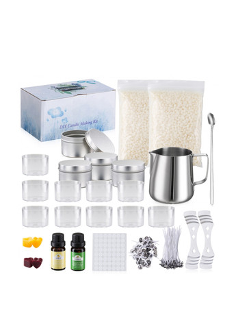 Цей набір дозволить Вам створити більше світла та тепла. Цікавий задум, для подарунка, адже він дозволить максимально залучити всіх. Відмінний подарунок, для новосілля, для тих хто любить тепло та затишок. Комплектація: Гніт 12 см (50 шт.), Гніт 5 см (20 шт.), Віск 2 пакетики по 250 г, Липкі наклейки для гніту 56 (шт.), Металева ложка 1 шт., Тримач гніту на свічку 2 шт. (необхідний, щоб тримати гніт, поки свічка застигає), Барвник у вигляді сердечок 4 шт., Ємність для свічки-14 шт. (10 пластикових та 4 металевих з кришкою), Баночка ароматизатор Лимон, Ваніль, Нержавіюча чаша 1 шт., Інструкція (листівка), Пакувальна коробка.