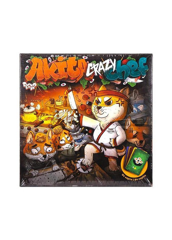 Настільна гра "Akita Crazy Chef" Гравці діляться на 2 команди: кухарів і відвідувачів. Відвідувачі роблять замовлення, а кухарі намагаються виконати їх якомога більше за відведений час. Комплектація: рулетка 1шт, ігрове поле 1шт, ігрові карти 84шт, правила гри 1шт, пісочний годинник 1шт. Кількість гравців: 2-8. Тривалість 25 хв. Розмір коробки 25х25х4см. Вік 10 +