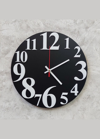 Цей елегантний настінний годинник стане чудовим акцентом у вашому інтер'єрі завдяки своєму класичному дизайну. Глибокий чорний колір основи додає годиннику вишуканості, а контрастні великі білі цифри роблять його зручним для зчитування часу навіть здалеку. Мінімалістичний дизайн ідеально підходить для будь-якої кімнати – від вітальні до офісу, додаючи простору сучасного вигляду. Годинник оснащений безшумним кварцовим механізмом, що забезпечує точність ходу без зайвого шуму. Виготовлений з високоякісних матеріалів, цей годинник поєднує стиль, функціональність і довговічність в одному аксесуарі.