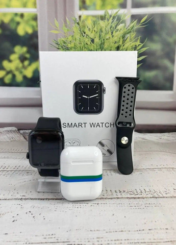 Смарт-годинник Smart Watch 8 Series • 7 варіантів циферблатів • Прийом та здійснення дзвінків по Bluetooth • Доступ до телефонної книги смартфона • Пульсометр • Тонометр • Крокомір • Підрахунок пройденої відстані • Лічильник калорій • Будильник • Секундомір • Дистанційне керування аудіоплеєром • Функція пошуку телефону • Вологозахист • Синхронізація зі смартфоном через Bluetooth • Зручний додаток для використання Бездротові навушники i12 TWS • Покращена якість звуку та мікрофону • Bluetooth 5.0, стабільне з’єднання до 12 м • Поліпшене сенсорне управління • Миттєве автоматичне сполучення зі смартфоном • Кейс на магнітах, навушники не випадають при відкритій кришці • Підтримка голосового помічника Siri та Google • Робота в активному режимі близько 2–2,5 годин • Функція Pop-up на iOS Основні атрибути: • Країна виробник: Китай • Стан: Новий • Тип роз’єму: Lightning • Тип підключення: Bluetooth • Одностороння гарнітура: Ні • Функція плеєра: Ні Для годинника: • Тип: Розумні годинник • Сумісність: Android, iOS • Інтерфейси: Bluetooth • Особливості: Пиловологозахищений корпус, ударостійкий корпус, будильник, акселерометр, гіроскоп, пульсометр, знімний ремінець • Тип дисплея: Кольоровий • Матеріал ремінця: Силікон • Оповіщення: Звукове, вібрація • Стать: Унісекс