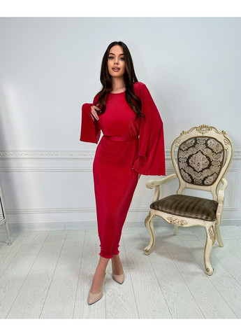 Витончена та елегантна Коралова Коктейльна Сукня Гофре Міді 23060 виконана з тканини Гофре з трикотажною підкладкою. Має широкий напівкруглий виріз горловини. Рукав довгий, плавно розширений до низу легкими хвилями. Акцент на талії зроблений за допомогою довгого пояса, який йде в комплекті. Коралова Коктейльна Сукня Гофре Міді 23060 прямого крою, добре сидить по фігурі і не сковує рухів. Довжина максі.