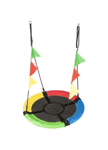 Садова гойдалка - гніздо Outtec XXL з прапорцями Підвісна гойдалка-гамак Outtec - це найкраще рішення для власного будинку або дачі! Вона досить легко кріпиться, надійна і її можна зняти в разі потреби. Сідайте зручніше і піднімайтеся в небо, адже ця велика підвісна гойдалка - гамак, де можна покатати відразу кілька дітей старше трьох років! Килимок для сидіння: чорний поліпропілен + тканина Оксфорд 600D. Встановити підвісну гойдалку легко, просто прикріпивши її на дерево, закріпити на дві точки для плавного гойдання або на одну - щоб крутитися! При цьому, зібрати її дуже легко, грати безпечно, а витримати вона зможе до 150кг! Популярність дитячих круглих гойдалок Гойдалки даного виду більше подобаються діткам, так як вони нестандартної форми і більш місткі. На гойдалці можна лежати або ж гойдатися разом з кількома друзями. Це чудовий варіант для веселих ігор на свіжому повітрі і відмінний вибір для ігрового майданчика. Така підвісна дитяча гойдалка відмінно розвиває координацію, рівновагу, моторику та заохочує до спільної гри! Сучасний дизайн, якісні матеріали, що застосовуються при виготовленні гойдалки, зроблять гру ваших дітей не тільки цікавою, але й безпечною. Основні переваги гойдалки гніздо Серед всіх особливостей і переваг підвісної дитячої гойдалки можна виділити найголовніші: якісні матеріали та довговічність; міцна сталева рама з м'якою накладкою з спіненого матеріалу; текстиль стійкий до УФ-випромінювання, воді і перепадів температур; потужні міцні мотузки; надійне кріплення, простота фіксації. Розвага для дітей Незвичайна форма - це саме те, що подобається діткам в ній. Катаючись на гойдалці вони можуть уявити себе завойовниками нових планет, адже вона нагадує літаючу тарілку або космічний шатл. Дуже легка збірка полегшує батькам установку, а надійність і міцність матеріалів дає впевненість в її безпеці. Діаметр гойдалки круглої підвісний 100см Металевий, захищений від корозії каркас Міцні кріпильні ремені - діаметр 13 мм Регулювання довжини ременів: 100 - 160см Відповідність європейським стандартам і нормам CE, EN 71-1, EN 71-2, EN 71-3, EN 71-8 Килимок для сидіння: чорний поліпропілен + тканина Оксфорд 600D Переваги: Координація рухів Тактильні відчуття Спільна гра Емоційний розвиток Зорове сприйняття Акуратність Підвищує концентрацію уваги Комплектация: гойдалка, кріплення Кому підійде? Для дітей з 3 років і старше.