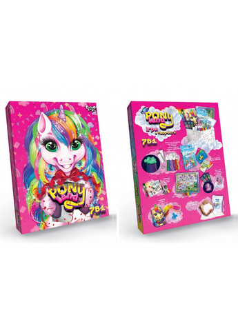 Набір "Pony Land" містить багато маленьких чарівних аксесуарів, які неодмінно сподобаються Вашій дитині. Разом з поні маленька принцеса перенесеться в чарівний світ ігор і отримає море яскравих вражень. Комплектація: маса для ліплення (світиться в темряві), нитки муліне, стрази-сердечка, нитки для створення фенечек, слайм (зростає), чарівний сніг, гра "ФортУно", настільна гра-бродилка.