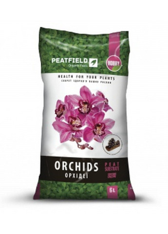 Субстрат розроблений спеціально для орхідей. Його особливість полягає в тому, що до складу входить соснова кора. Вона знижує щільність грунту, зменшує тиск на корені і збільшує кількість повітря дуже необхідного корням.Верхній шар торфу змішаний з сосновою корою і органо-мінеральних добрив у спеціальній пропорції для того щоб отримати ідеальний малопоживний дихаючий субстрат для орхідей. Все субстрати Peatfield зроблені на сучасному обладнанні з українського торфу. рН: 5,0-6,0Состав: 100% торф, верхній шар, фракція 5-15 см. У т. ч азоту 50-80 мг / л, оксиду фосфору-5: 50-90 мг / л, оксиду калію: 80-100 мг / л.