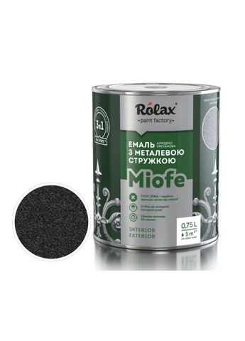 Склад Алкідно-уретанова смола, силікон, алюмінієва паста, пігменти, розчинник, спеціальні допоміжні добавки. Призначення Для декоративно-захисного фарбування виробів і конструкцій з чорних металів (залізо, сталь, чавун тощо), а також дерев'яних та мінеральних поверхонь, всередині і зовні приміщення. Може наноситися на міцну іржу і на поверхні, раніше покриті алкідними, алкідно-уретановими, поліуретановими, нітроцелюлозними та іншими матеріалами на основі органічних розчинників. Рекомендується для декорування елементів художньої ковки, металевих дверей, воріт, грат, огорож, сходів, сейфів тощо. Властивості Одночасно виконує функції перетворювача іржі, ґрунтовки та фінішного декоративного покриття, що дозволяє скоротити вартість і час проведення робіт. Характеризується високою покривною здатністю і відмінною адгезією, приховує нерівності та дефекти поверхні, швидко висихає. Утворює міцне фактурне металізоване захисне покриття, стійке до агресивного впливу навколишнього середовища та надійно захищаюче метал від корозії протягом тривалого часу. ІНСТРУКЦІЯ ПО ЗАСТОСУВАННЮ Підготовка поверхні: Оброблювана поверхня повинна бути міцною, сухою і чистою, без пилу, жирових, біологічних та інших забруднень. Пухку та відшаровану іржу видалити відповідними інструментами!!! Старі міцні покриття ретельно відшліфувати та перевірити на сумісність з емаллю за допомогою тестового фарбування. Нанесення: Безпосередньо перед застосуванням емаль слід ретельно перемішати до отримання однорідної маси, при необхідності розбавивши розчинником «Ролакс РК-008», всі інші розчинники використовувати заборонено! Роботи проводити при температурі (навколишнього середовища, емалі і поверхні що фарбується) від + 5°C до + 25°C та вологості повітря не вище 80%. Періодично помішуючи, рівномірно нанести емаль на поверхню, пензлем, валиком або фарборозпилювачем. Увага!!! З метою запобігання утворенню шагрені, другий і всі наступні шари наносяться методом «мокрий по мокрому» з інтервалом в 10 - 20 хвилин або не раніше ніж через тиждень! Ідеальний результат досягається при нанесенні 2-х шарів емалі методом розпилення, на повністю очищену і попередньо заґрунтовану горизонтальну поверхню. Інструмент промити розчинником відразу після використання. Закриту тару із залишками продукту утилізувати в організованих місцях збору побутових відходів. Умови зберігання: Зберігати і транспортувати в герметичній заводській упаковці при температурі не вище 30°C, не допускати попадання прямих сонячних променів. Заходи безпеки: Роботи проводити в добре провітрюваному приміщенні. Для захисту рук використовувати гумові рукавички, органів дихання - респіратор, очей - захисні окуляри. Під час роботи не палити! БЕРЕГТИ ВІД ВОГНЮ! БЕРЕГТИ ВІД ДІТЕЙ!