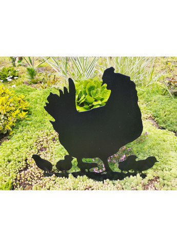 Декоративна фігура «Курка з курчатами» виготовлена з міцного металу товщиною 1,2 мм та покрита стійкою до атмосферних впливів чорною порошковою фарбою. Завдяки своєму елегантному дизайну, вона стане оригінальною прикрасою для клумби, газону або двору, додаючи вашому саду особливого шарму. Характеристики: Матеріал: метал Покриття: чорна порошкова фарба з грунтовкою Розміри: висота — 36 см, ширина — 41 см Товщина металу: 1,2 мм Переваги: Стійкість до погодних умов Довговічність та міцність Легкість у встановленні Універсальність у використанні: підходить для саду, клумби, газону або як елемент декору на паркані Ця фігура стане чудовим подарунком для поціновувачів садового мистецтва та тих, хто бажає надати своєму подвір'ю унікального вигляду.