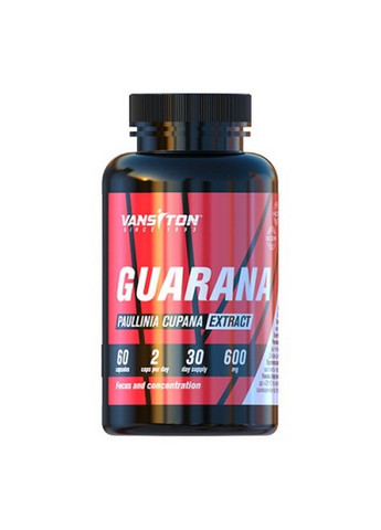 Guarana від популярної компанії з виробництва біодобавок із США Haya Labs – стандартизований екстракт насіння гуарани у таблетках. Ця рослина, що росте в Бразилії, Парагваї, Колумбії, Венесуелі і Перу, являє собою кучеряву ліану з невеликими плодами в гронах. З цих плодів одержують насіння, що містить велику кількість кофеїну, а також теобромін, теофілін, смоли, дубильні речовини, калій, магній, танін та вітамін В1. Завдяки своєму унікальному складу гуарану вважається одним із найефективніших природних стимуляторів та енергетиків.