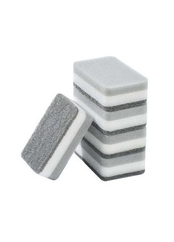 Набір із 5 губок - ідеальний помічник у вашому домі для швидкого та ефективного видалення залишків їжі, забруднень та плям із посуду. Губки тришарові, тому прослужать доволі довго. М'яка поролонова частина створює багато піни, допомагаючи ефективно видаляти звичайні забруднення з посуду та поверхонь. Абразивний шар призначений для усунення застарілих забруднень і залишків пригорілої їжі. Ці губки ідеально підходять для миття посуду, чистки раковини, ванни та інших поверхонь. З їх допомогою прибирання стає швидким і ефективним, а посуд завжди залишатиметься чистим та блискучими.