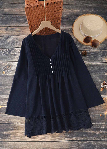 Класична блуза з мереживом. Виготовлена з приємної на дотик тканини. Блуза силуетного крою з довгими рукавами та манжетами. Має круглий виріз коміру. Головна її особливість це вшиті вставки з напівпрозорої сіточки з мереживами на рукавах. Блуза має класичну лінію плеча та застібається на ґудзики.