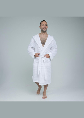 Вафельний халат із заходом, з поясом та кишенями. На вибір із капюшоном або без. Завдяки вільному крою та м'якому матеріалу халат не сковує рухів і дарує відчуття комфорту. Вафельна тканина зі 100% бавовни. Легка та приємна на дотик, швидко вбирає вологу та сохне. Вафельний халат стійкий до зношування та деформації, тому слугуватиме вам довгі роки. Рекомендуємо прати при температурі не більше 40 градусів. Щоб зберегти м'якість халата, не використовуйте агресивні мийні засоби.