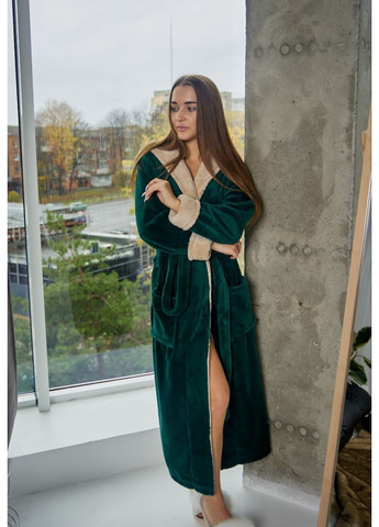 Халат жіночий, теплий. Мʼякий та приємний до тіла, виготовлений з тканини софт (синтетична м'яка ворсиста тканина). Склад: 100% поліестр Щільність: 300 г/м2 Прямого крою, на запах. Передбачений обʼємний капюшон та кишені. Зручна посадка забезпечує комфорт та зручність для щоденного використання, а також для використання після банних процедур.