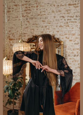 Халат жіночий з м'якого та якісного крепу Армані, марсала з чорним, зав'язується на запах за допомогою пояса, рукав 3/4, довжина вище колін; гарна комфортна модель незамінна у домашньому гардеробі; можна підібрати комплектом до халата сорочку та піжамку