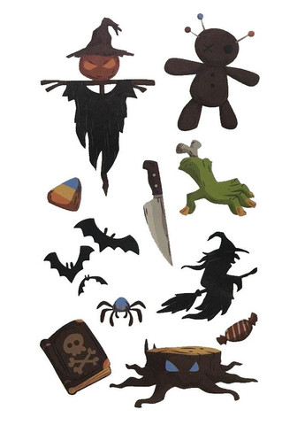 Наклейки це стильні та брендові стикери з 3D-ефектом для вишуканого дизайну нігтів. Наклейки для нігтів дизайн, який може використовуватися як для натуральних, так і для нарощених нігтів. Наклейки на нігті дуже легкі у використанні, з їх допомогою красивий манікюр зможе зробити як професійний майстер манікюру, так і новачок. Наклейки мають тематику Хелловіна, так що, купуючи ці наклейки, забудьте про занепокоєння вибору манікюру. Спосіб застосування наклейок: Готуємо ніготь до стандартної процедури покриття гель-лаком або лаком для нігтів. Покриває нігтики базовим покриттям. Просушуємо в лампі. Зніміть липкий шар за допомогою засобу для зняття липкого шару. Виріжте необхідну ділянку малюнка з наклейки та за допомогою пінцета перенесіть на ніготь. Закріпити всім топовим покриттям. Якщо раптом наклейка вилізла за межі нігтьової пластини, акуратно зріжте непотрібні частини ножицями.