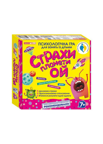 Новинка в колекції психологічних ігор від Ранок. Наочні посібники. 3 в 1: корисний подарунок, цікаве дозвілля та щаслива родина! Відкрийте світ емоційної терапії через гру! Ця карткова психологічна гра допоможе дітям подолати соціальні страхи, покращити комунікацію та навчитися розуміти одне одного. Гра «Страхи планети Ой» - 100% створює чудовий настрій! А ще сприяє розвитку фантазії, креативності, умінню реагувати на непередбачувані події, підвищує впевненість в собі тощо. Зустрічайте 9 чудернацьких інопланетян, які проведуть вашу дитину через веселі й корисні завдання! (Тут завдання гравцям ставлять 9 чудернацьких інопланетян: Перелякас, Помиляс, Гнівач, Ображуля, Жартувач, Сором’язка, Сумнівач, Добротуся, Базікало). Рекомендуємо використовувати для занять із дітьми: педагогам, психологам, батькам, дідусям, бабусям тощо. Якісний друк упакування та карток, унікальний дизайн привертають увагу і зацікавлюють, як дітей, так і дорослих і стимулюють до гри. Це інструмент, який допомагає малюкам впоратися зі страхами в легкій та веселій формі. Гра «Страхи планети Ой» – це ключ до емоційного благополуччя вашої родини! Допоможіть дитині подолати страхи за допомогою гри! Чи відчуваєте, що ваш малюк стикається з різними страхами, але ви не знаєте, як допомогти? Пропонуємо вам захоплюючу психологічну гру «Страхи планети Ой», яка стала чудовим інструментом для подолання труднощів та освоєння навичок звільнення від страхів у дітлахів. Чому обрати «Страхи планети Ой»?