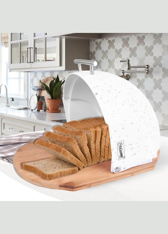 Хлібниці від Maestro відрізняються дизайном, матеріалами та конфігурацією, але поєднує їх бездоганну якість, ергономічні форми та унікальний стиль. У виготовленні хлібниць використовуються тільки екологічно чисті матеріали, такі як дерево, нержавіюча сталь, акрил. Конструкція кожної з хлібниць розроблена з метою максимально довго залишати ваш хліб свіжим і оберігати його від вологи, яка на кухні завжди в достатній кількості. li> Відкидна кришка з нержавіючої сталі Задня стінка з нержавіючої сталі Розмір: 39*26*15