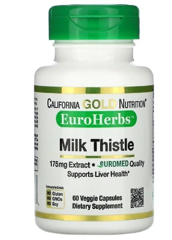 Екстракт розторопші EuroHerbs™ California Gold Nutrition® є екстрактом розторопші найвищої якості, стандартизований до 80% флавоноїдів силімарину. Зелені вегетаріанські капсули з барвником природного походження виготовлені з хлорофілу, отриманого з листя люцерни та шовковиці. Euromed - один з провідних світових європейських виробників стандартизованих трав'яних екстрактів фармакопейного класу. Друк Phyto-Proof® гарантує використання елітного насіння культурних сортів рослин для контролю якості всього процесу: від насіння до готового екстракту. В основі добавки – екстракт розторопші фармацевтичної якості. Розторопша – унікальний рослинний нутрієнт, який надає на організм загальнозміцнюючу дію та перешкоджає пошкодженню клітин вільними радикалами. При регулярному вживанні продукт не тільки відновлює пошкоджені клітини печінки, а знижує ризик онкологічних захворювань. Продукт ідеально підходить для вживання професійними атлетами та показаний людям, які перебувають під впливом великих фізичних та розумових навантажень. Також розторопша регулює білковий обмін, знижує ризик цирозу печінки, посилює опір організму до вірусних та інфекційних захворювань. Показання до застосування: Допоможе покращити загальний стан здоров'я та запобігти захворюванням печінки та жовчовивідних шляхів. Сприяє нормальному відтоку жовчі. Стимулює легке здорове схуднення та активізує менатболізм. Забезпечує виведення з організму токсинів та шлаків. Полегшує стан діабетиків. Запобігає вагінітам та ерозії у жінок. Служить гарною профілактикою цирозу печінки. Знижує рівень цукру на крові. Рекомендації щодо застосування Приймайте 1-3 рослинні капсули на день з їжею або без неї або згідно з вказівками вашого лікаря.