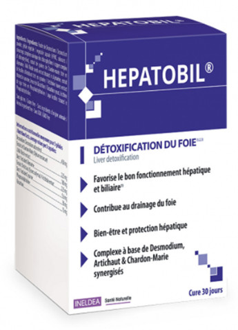 INELDEA ГЕПАТОБІЛ® / HEPATOBIL - дренаж та детоксикація печінки - 90 капсул Активізує дренаж та функції печінки - Рослинні екстракти: артишок + розторопша + десмодіум + глутатіон + фосфатидилхолін - Сприяє правильній роботі печінки - Зменшує тяжкість травлення - Сприяє детоксикації організму - Без діоксиду титану - рослинні капсули Для людей: - у харчуванні яких багато жирів та швидких цукрів; - після важких, ситних страв та алкоголю; - після контакту із токсичними хімічними речовинами (фарби, розчинники, медикаментозне лікування); - що страждають від симптомів застою в печінці: втома, обкладений язик, розлади травлення, запаморочення, головний біль. Печінка – життєво важливий орган, вона відіграє важливу роль у нашому організмі та виконує кілька різних функцій: розщеплення токсичних речовин і відходів; метаболізм вуглеводів, ліпідів і білків; а також зберігання та розподіл поживних речовин з травлення. Печінка є одним з 5 органів видільної системи, що означає, що вона бере участь у виведенні метаболічних «відходів» і токсинів, які накопичуються в нашому організмі. Однак вади харчування, шкідливі звички та контакти з хімічними сполуками можуть забити печінку і сприяти втомі і розладам травлення. Десмодіум та екстракт розторопші (титрований в силімарин) традиційно використовуються для правильного функціонування печінки, що сприяє гарному травленню, а також детоксикації організму. Діюча речовина розторопші – силімарин – ефективно захищає печінку від більшості токсинів та активізує її роботу. Силімарин містить одні з найпотужніших відомих медицині сполук, що застосовуються при лікуванні захворювань печінки, включаючи гепатит та цироз. Екстракт артишоку, титрований в цинарин, сприяє травленню, доповнюючи дію десмодіуму та розторопші. Він бере участь у секреції травної рідини, детоксикації печінки та комфорті кишечника. ДІЄТИЧНА ЦІННІСТЬ ЩОДЕННОЇ ДОЗИ (3 КАПСУЛИ), У СЕРЕДНЬОМУ: • Десмодіум (Desmodium adscendens) 450 мг: Ця рослина показала відмінні результати у клінічних дослідженнях зі зняття токсичного отруєння печінки різними речовинами (зниження рівня амінотрансфераз). Деякі французькі лікарі використовують його для лікування гепатиту. Дія десмодіуму пов'язана із вмістом специфічних алкалоїдів з детоксикувальними та протизапальними властивостями. • Екстракт розторопші (Silybum marianum) 225 мг (*екв 9 000 мг), у т.ч. силімарин 180 мг: Силімарин - активна речовина, що міститься в насінні зрілих плодів розторопші. Екстракт розторопші, титрований до 70-80% силімарину, став об'єктом численних клінічних досліджень, які підтвердили його дієвість проти травних розладів, спричинених проблемами печінки та жовчного міхура. Силімарин є одним із найпотужніших гепапротекторів, завдяки антиінфекційним властивостям та здатності стимулювати регенерацію клітин печінки. • Екстракт артишоку (Cynara scolymus) 225 мг, у т.ч. цинарин 5.6 мг: Артишок збільшує вироблення жовчі, що сприяє дренажу печінки та травленню. Клінічні дослідження підтверджують його ефективність для лікування розладів травлення, пов'язаних із дисфункцією жовчного міхура та печінки. • Фосфатидилхолін 30 мг: Природно виробляється в печінці, входить до складу жовчі та бере участь у травленні та детоксикації печінки. Клінічними дослідженнями визнається використання для подолання проблем з апетитом, зняття навант