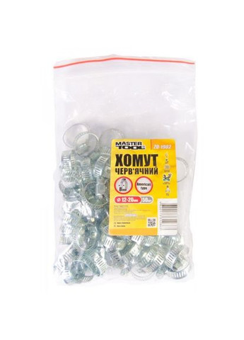 Хомут черв'ячний оцинкований American type 8,0 мм Ø100-120 мм, 10 шт MASTERTOOL GM (20-1972) - це набір з 10 хомутів, призначених для кріплення та закріплення різних елементів у різних сферах діяльності. Хомути черв'якові є одним з найуніверсальніших і найпопулярніших видів кріпильних виробів, завдяки своїй простоті та надійності. Хомути черв'ячні оцинковані American type мають діаметр 8,0 мм та діапазон затиску від 100 до 120 мм. Вони виготовлені з високоякісної оцинкованої сталі, що забезпечує високу міцність та довговічність виробів. Хомути мають характерну форму, що нагадує хробака. Вони складаються зі смуги із закругленими краями, на яку накладено спіральну насічку, яка утворює зуби. Зуби зачіплюються за смугу і дозволяють легко та надійно закріплювати хомут на поверхні. Хомути черв'якові American type 8,0 мм Ø100-120 мм, 10 шт MASTERTOOL GM (20-1972) можуть використовуватись для кріплення труб, кабелів, проводів, шлангів та інших елементів у різних галузях діяльності, включаючи автомобільну, будівельну, сільськогосподарську та домашню. Ці хомути легко встановлюються та демонтуються за допомогою спеціального ключа, який також входить до комплекту постачання. Хомути American type мають високу точність та надійність фіксації, що забезпечує безпеку та надійність кріплення елементів. Загалом, хомути черв'ячні оцинковані American type 8,0 мм Ø100-120 мм, 10 шт MASTERTOOL GM (20-1972) - це якісний та надійний набір хомутів, який може використовуватись у різних сферах діяльності для кріплення та закріплення різних елементів. Вони мають широкий діапазон затиску, що дозволяє використовувати їх для кріплення різних розмірів елементів. Завдяки оцинковуванню, хомути мають високу стійкість до корозії та можуть використовуватись в умовах підвищеної вологості чи агресивних середовищах. MASTERTOOL – один із найвідоміших українських брендів інструменту. Діяльність компанії стартувала з 1991 року і на сьогоднішній момент у будь-якому регіоні України можна отримати інструмент та обладнання для ремонтно-будівельних робіт цієї марки. Відмінна позитивна характеристика інструменту MASTERTOOL - співвідношення ціна-якість. При гідній якості матеріалу виготовлення та зручній комплектації інструмент супроводжує невелика вартість.