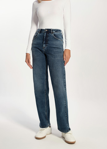 Колір Темно-синій / Фасон Прямі / Висота посадки Висока талія / Декор Потертості / Сезонність Всесезон
