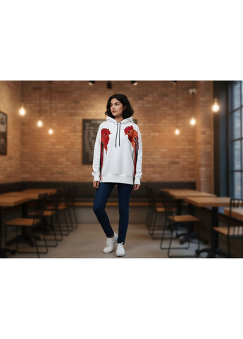КОМЕНТАР СТИЛІСТА Худі прямого силуету виконане з м’якої двонитки (95% бавовна, 5% еластан). Тканина середньої щільності, приємна до тіла, добре тримає форму, дихає та злегка тягнеться завдяки еластану. Спереду розташована декоративна нашивка з контрастним принтом у вигляді рослинного мотиву. Фасон із довгим рукавом на спущеній лінії плеча, манжети та низ виробу виконані з еластичної трикотажної резинки. Горловина висока — подвійний комір-стійка, що додає комфорту у прохолодний сезон. Застібок та кишень немає, посадка вільна, підкладки також немає. Ідеально підходить для повсякденного стилю, прогулянок та роботи в кежуал-офісі. Тканина не просвічує, після прання зберігає форму й колір за умови дотримання правил догляду. Фактичні заміри по виробу: Обхват грудей: 42 – 112 см, 44 – 118 см, 46 – 124 см Обхват талії/низу: 42 – 96 см, 44 – 102 см, 46 – 110 см Ширина у плечах: 42 – 54 см, 44 – 57 см, 46 – 60 см Довжина виробу (по спинці): 42 – 59 см, 44 – 62 см, 46 – 64 см Довжина виробу (по переду): 42 – 53 см, 44 – 56 см, 46 – 58 см Довжина рукава: 42 – 56 см, 44 – 56 см, 46 – 56 см Обхват рукава: 42 – 46 см, 44 – 47 см, 46 – 48 см Рекомендації по догляду: делікатне ручне прання у холодній або теплій воді (30 °C) прати окремо або з подібним одягом не використовувати відбілювачі віджимати вручну, без скручування сушити у розкладеному вигляді, у тіні не сушити в машинці чи на батареї прасувати навиворіт при 110–150 °C для вишивки – прасувати через бавовняну тканину за потреби — хімчистка дотримуватись інструкцій на етикетці